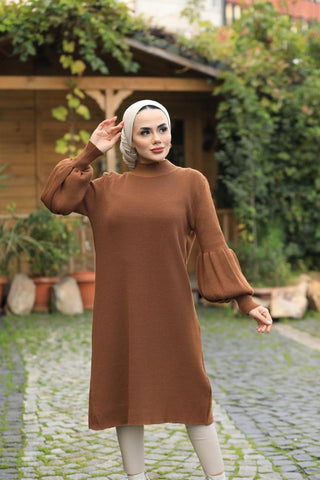 Tuniek trui jurk lang met ballonmouw | Bruin